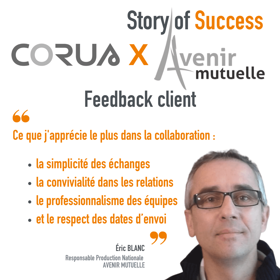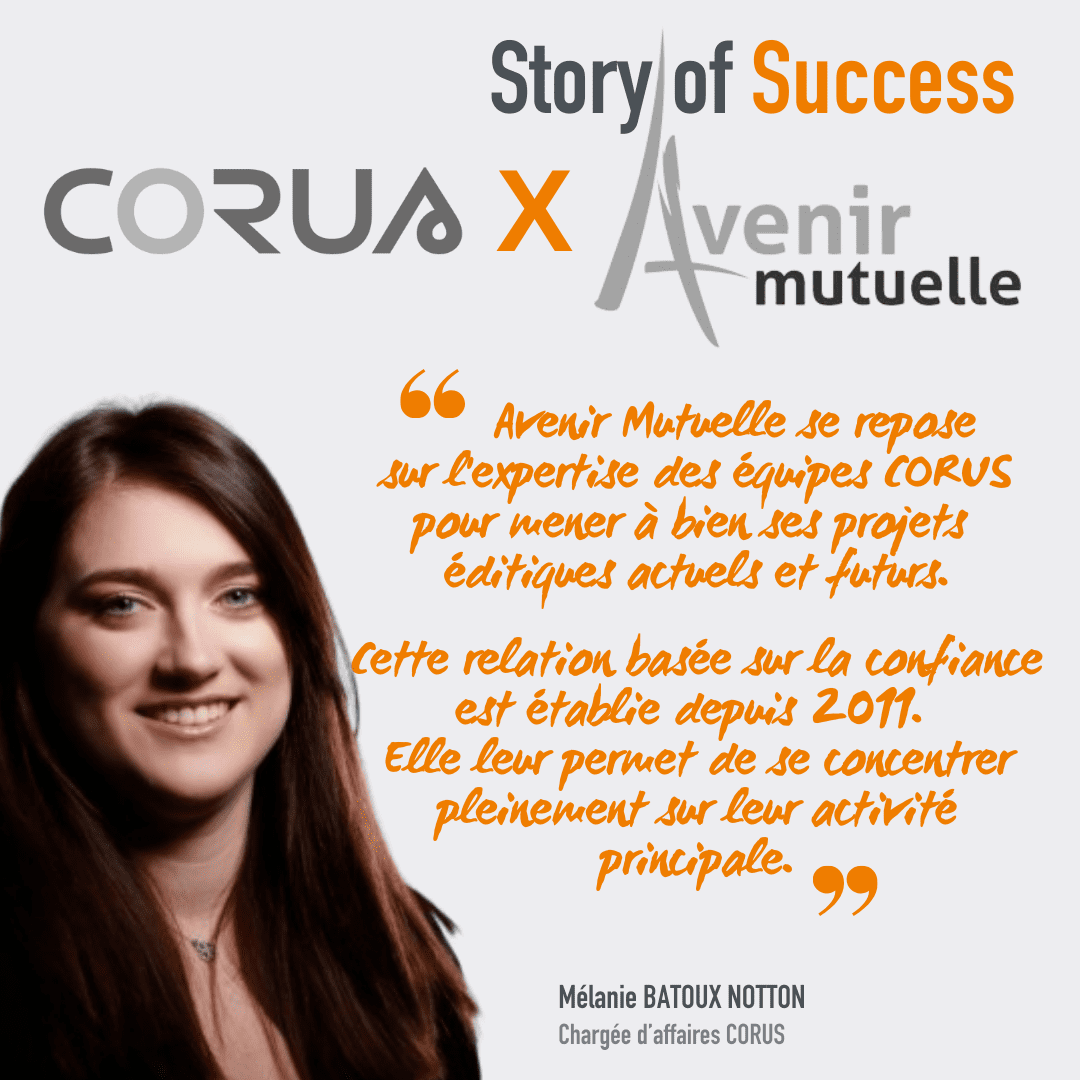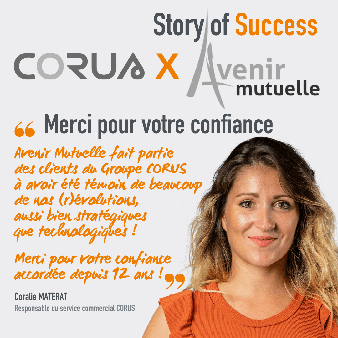 ❝ AVENIR MUTUELLE se repose sur l’expertise des équipes CORUS pour mener à bien ses projets éditiques actuels et futurs. Cette relation basée sur la confiance est établie depuis des années. Elle leur permet ainsi de se concentrer pleinement sur leur activité principale. ❞